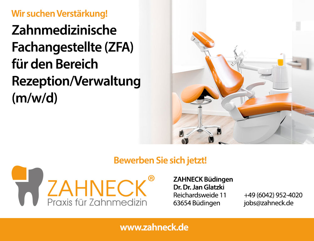 Arbeitsort: Praxis Zahneck; Dr. Dr. Jan Glatzki / 63654 Büdingen